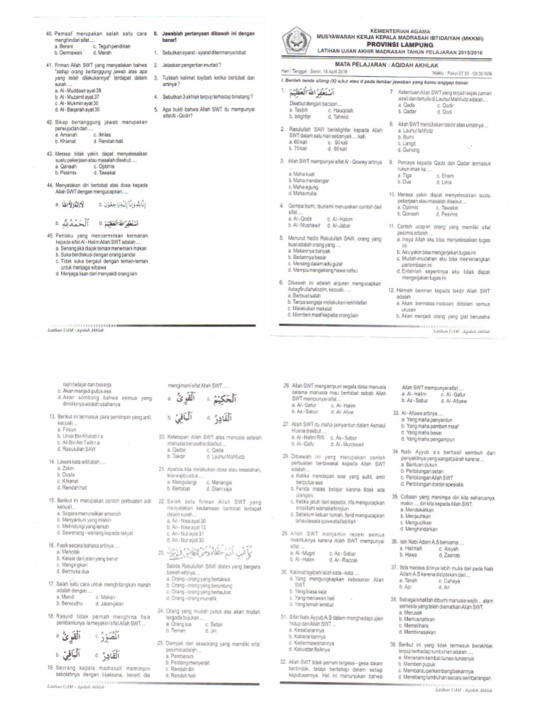 Latihan Soal Akidah Akhlak Kelas 6 Semester 2
