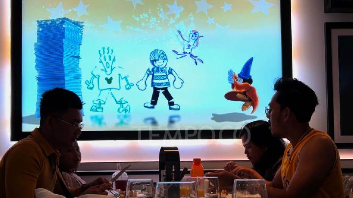 Saat Tempo mencoba makan malam di restoran ini pada 6 Maret 2026, ruangan terlihat seperti ruang menggambar. Di atas belasan meja tersedia kertas A3 dan beberapa spidol berwarna. Tertulis di kertas tersebut adalah instruksi “Gambarlah karaktermu!”. Berbagai sketsa awal Disney pun terpajang di dinding tempat makan.